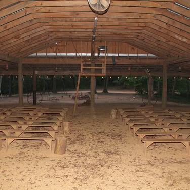 Old-fashioned fun and fellowship await you at Camp Little Light's Praise Barn. This open-sided facility features bench seating for 150, a stage with full electrical connections, large fans to keep everyone cool, and playground equipment nearby. It also features a Snack Room and restrooms with shower facilities.