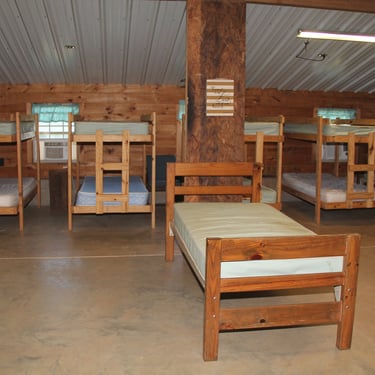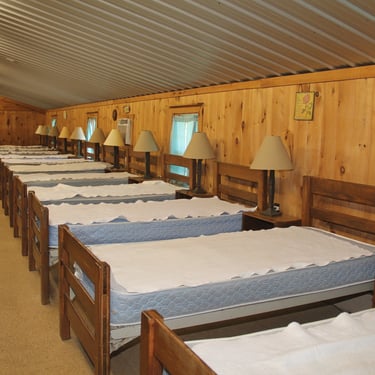 Camp Little Light's Bunkhouse is perfect for overnight events. It features 64 twin size beds in four rooms, air conditioning, men's and women's restrooms with shower facilities, and a large midway for indoor games and socializing.
